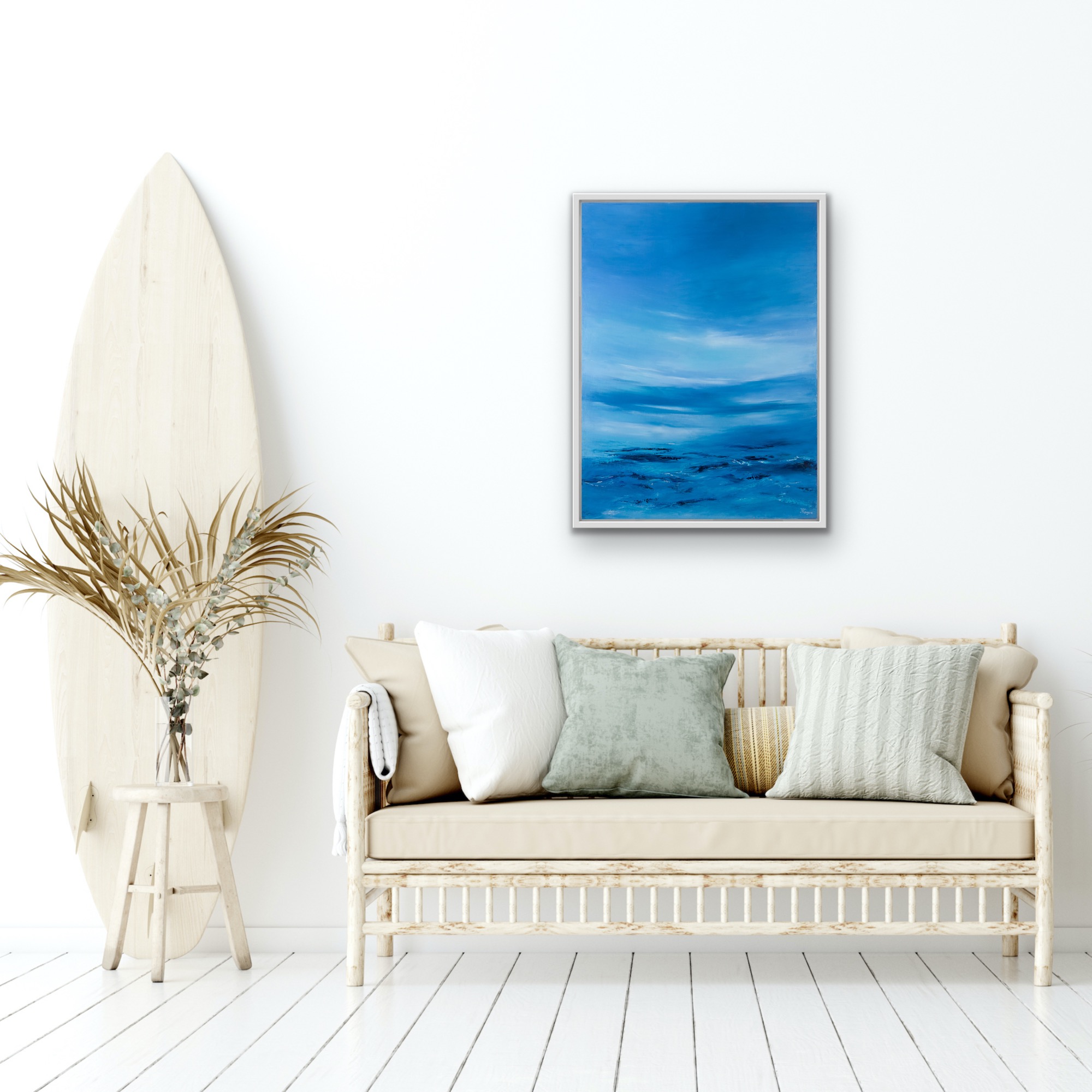 The big blue sea to sky landscape painting.